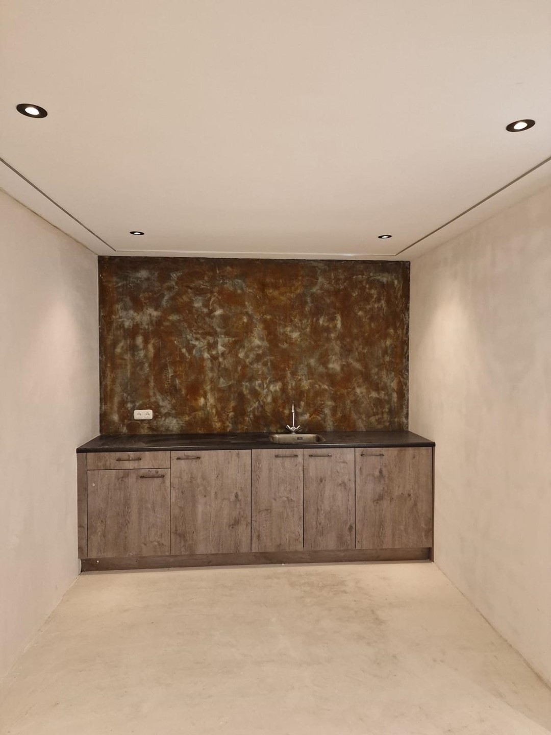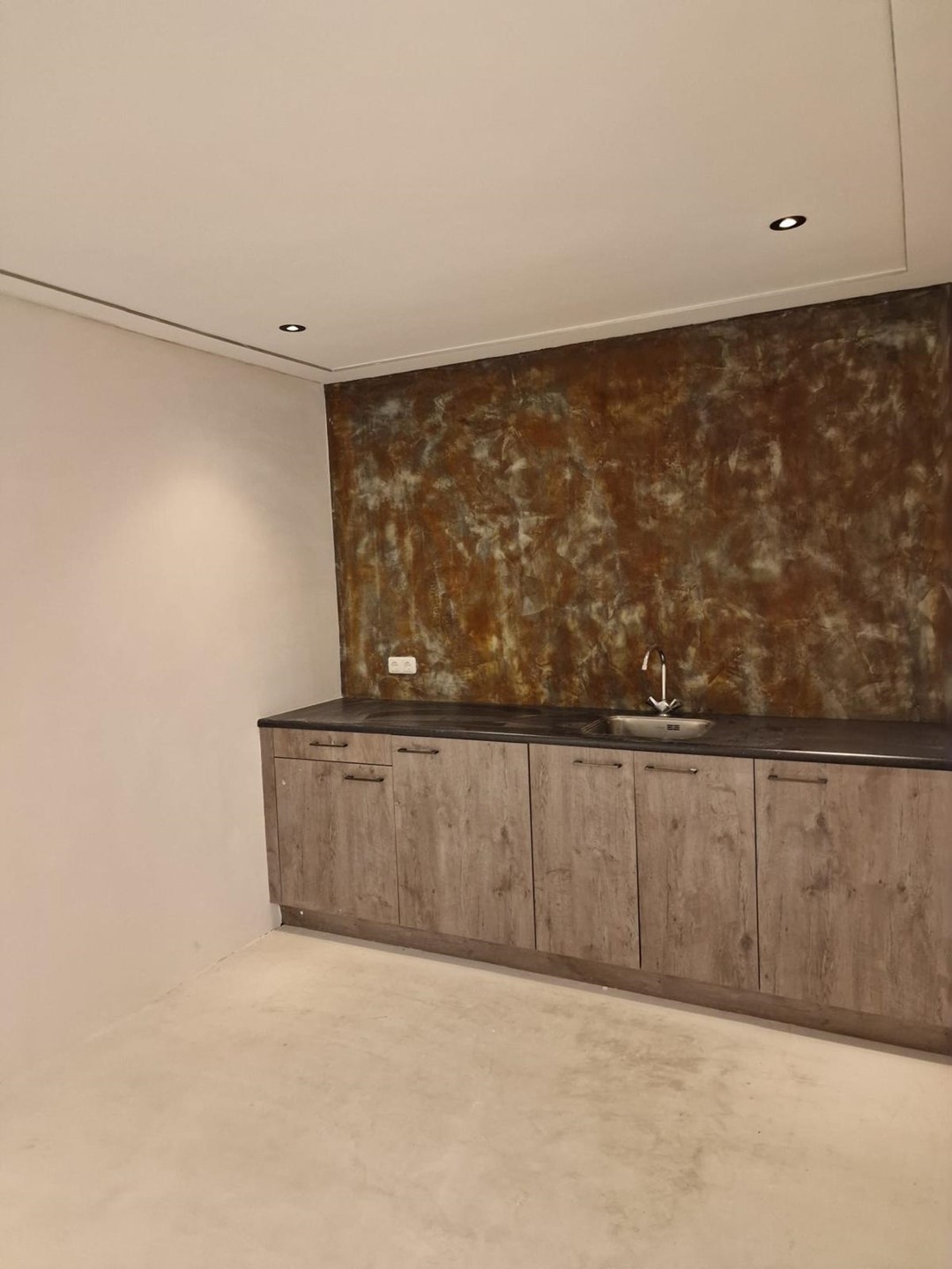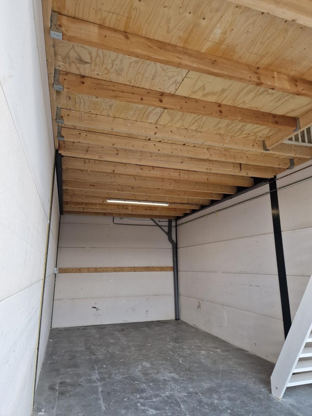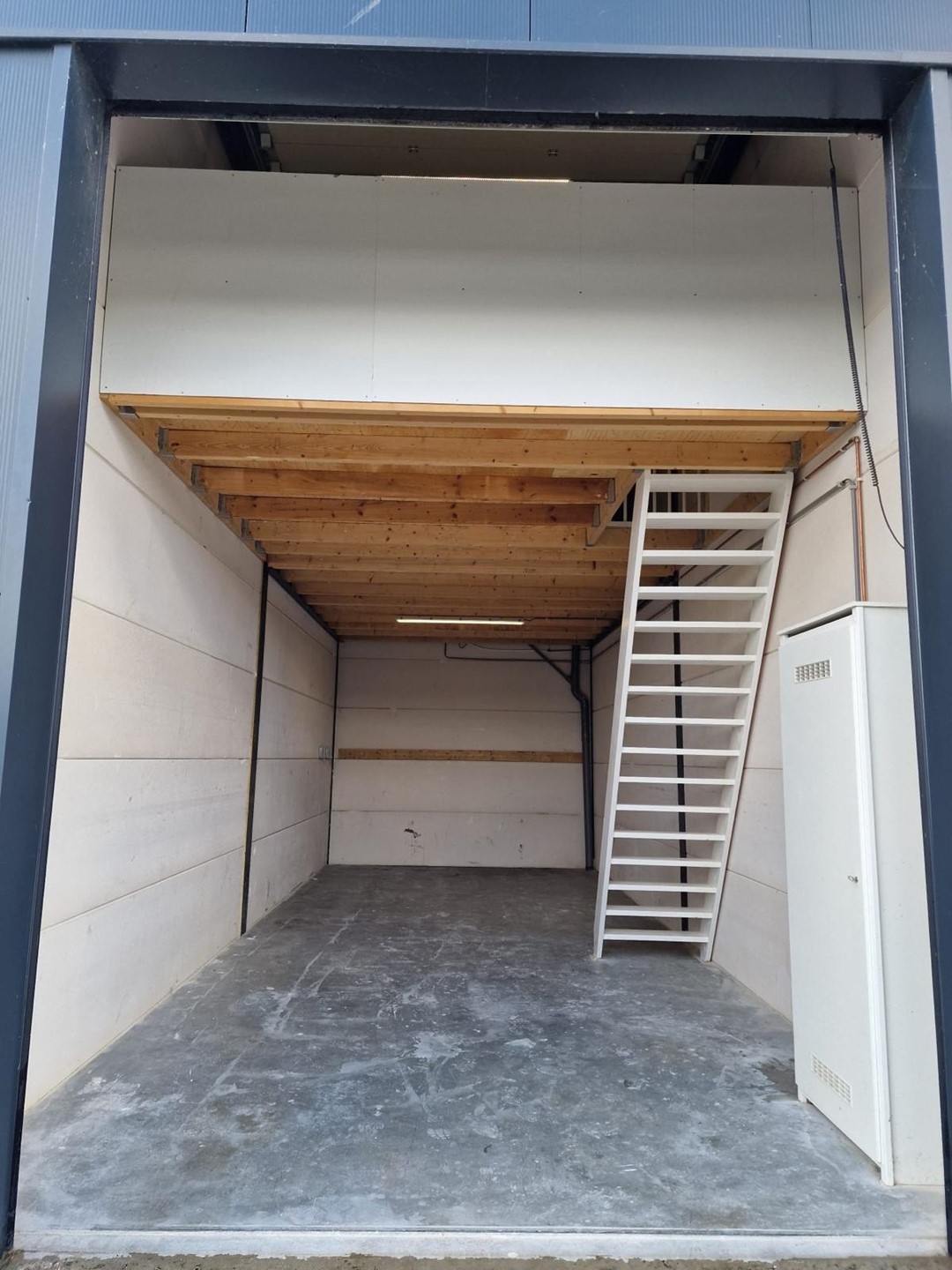 De loods is voorzien van een ruime houten verdiepingsvloer die rust op stalen spanten. Op de eerste verdieping vindt u een keurig afgewerkt toilet en een praktisch keukenblok, waardoor deze unit direct gebruiksklaar is.