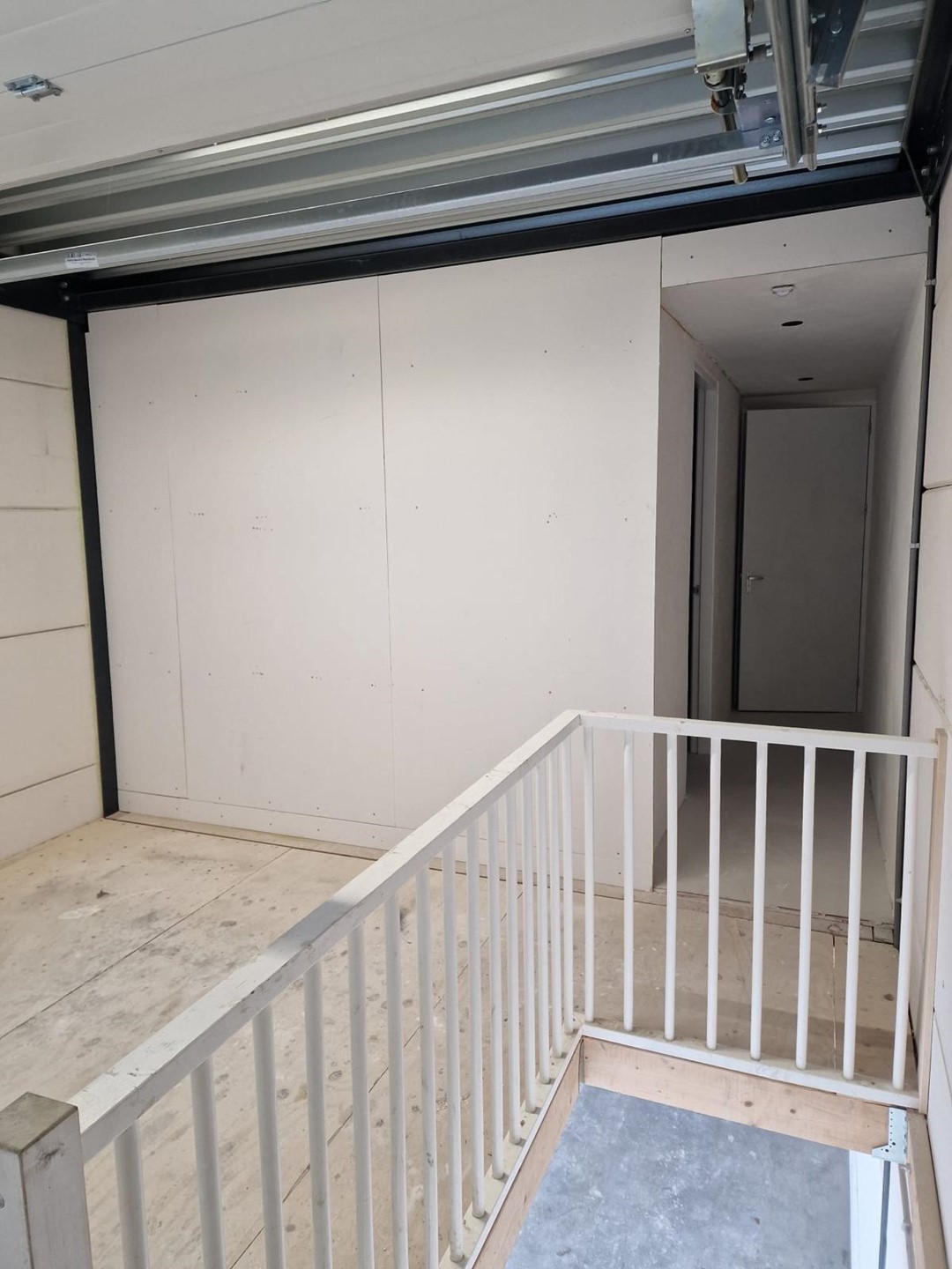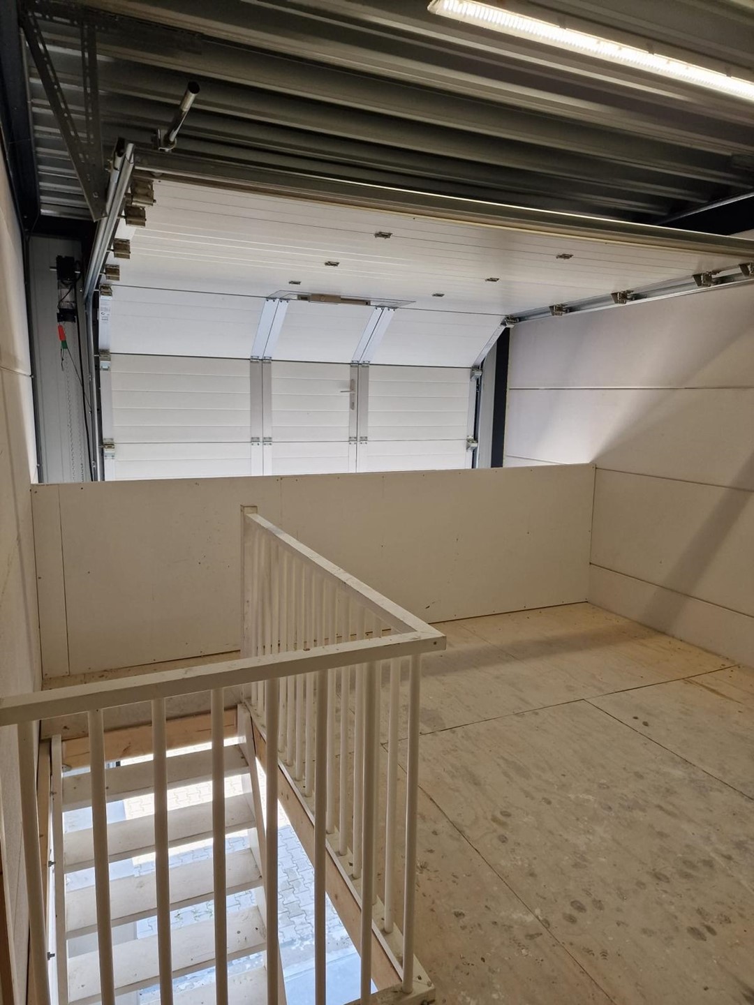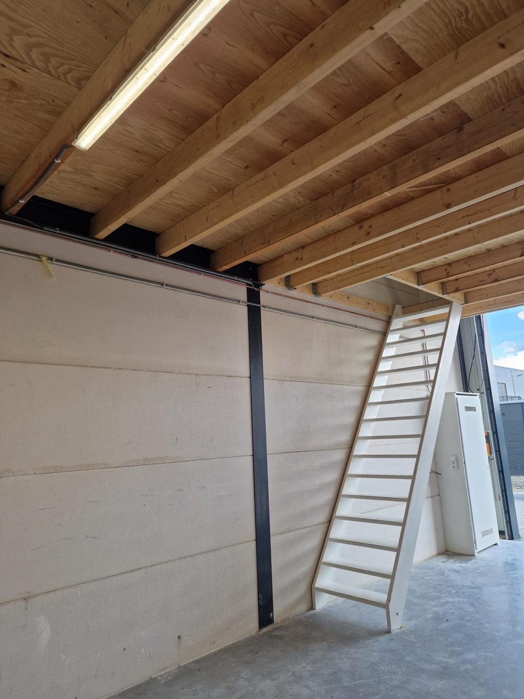 Houten verdiepingsvloer, ideaal voor extra opslag of werkruimte.