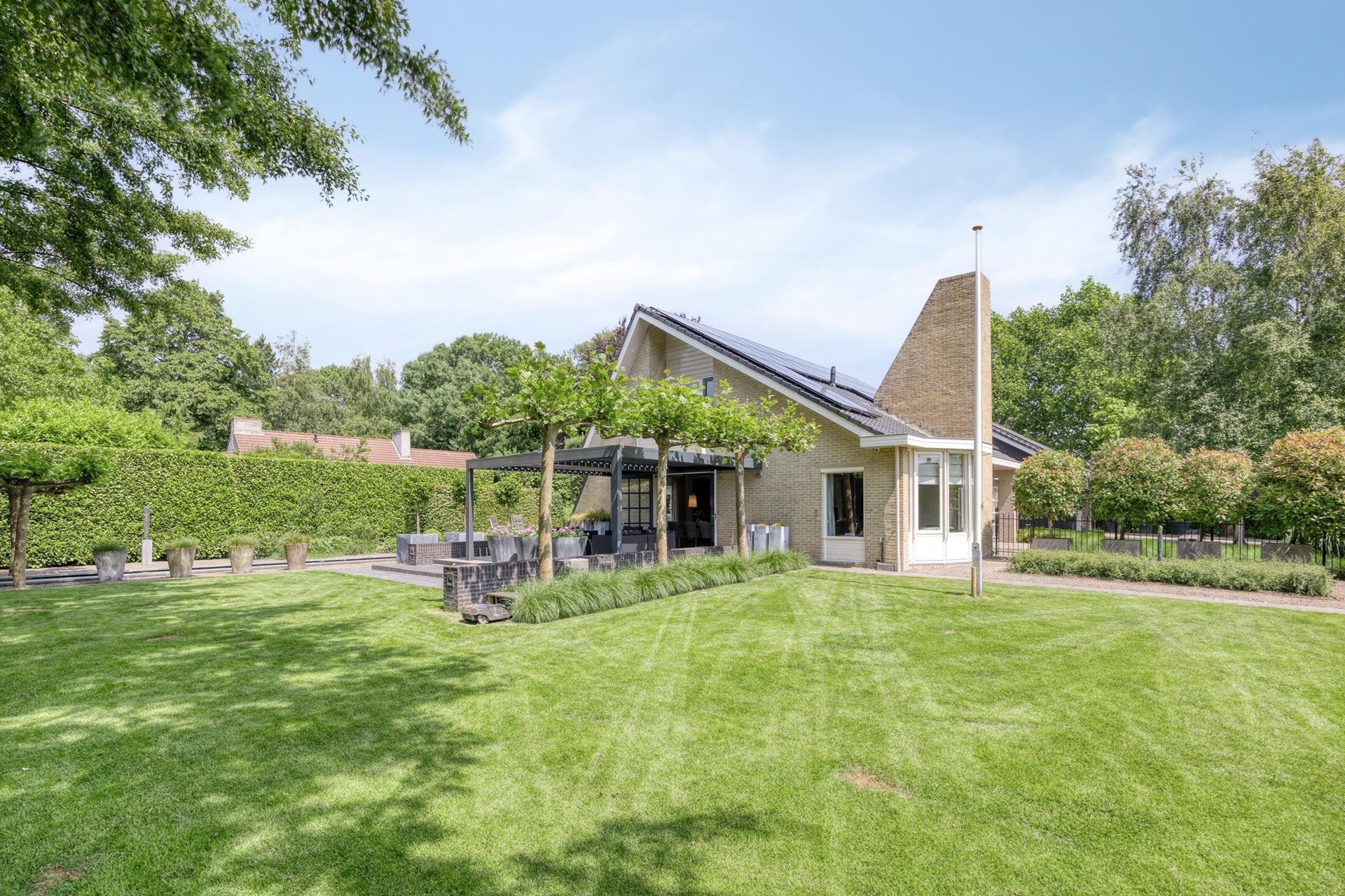 Met maar liefst 86 zonnepanelen, twee hybride warmtepompen en hoogwaardige isolatie is dit een toekomstbestendige woning zonder concessies aan stijl of comfort. Met totaal 5 ruime slaapkamers, kantoor, verwarmd inpandig zwembad, dubbele garage, separate schuur voor stalling van fietsen en tuinmeubelen, riante kelders en een onder architectuur aangelegde tuin maken het plaatje compleet.