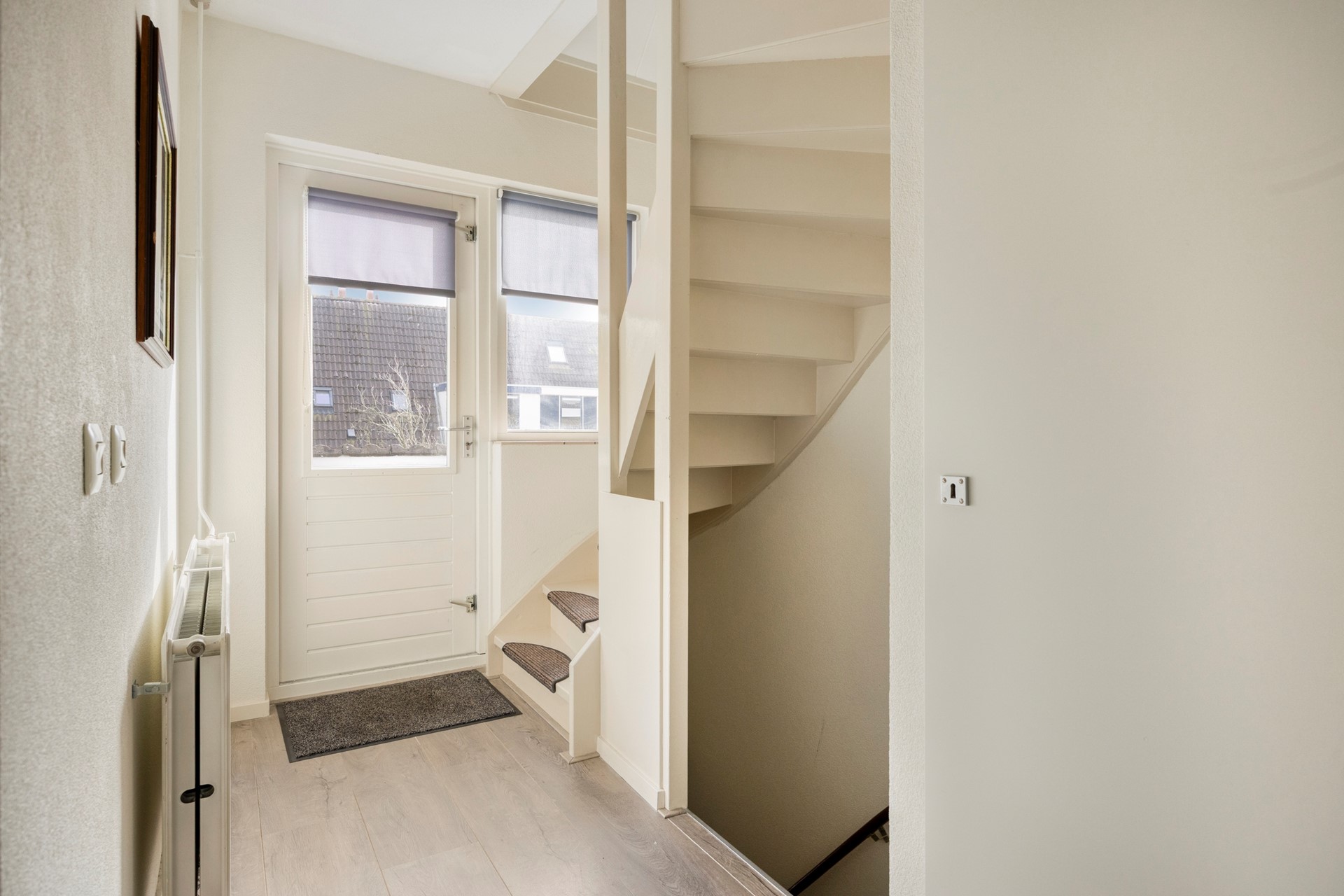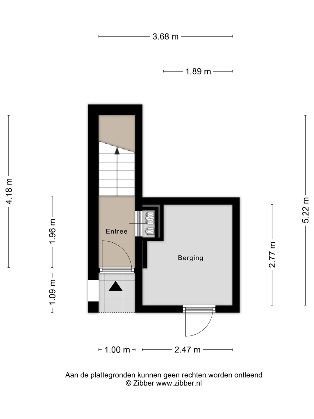 Via de eigen entree op de begane grond komt u binnen in de hal met trapopgang naar de woonverdieping. Op deze verdieping bevindt zich tevens een praktische berging, ideaal voor fietsen, gereedschap of extra opslag.