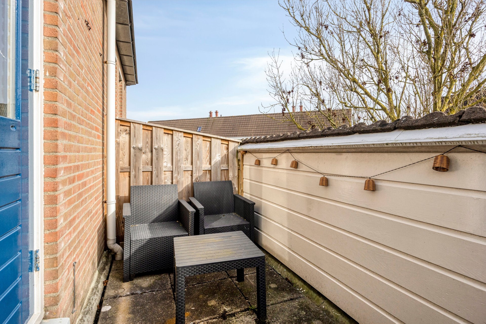Vanuit de woonkamer is er toegang tot het balkon, een fijne plek om buiten te zitten.