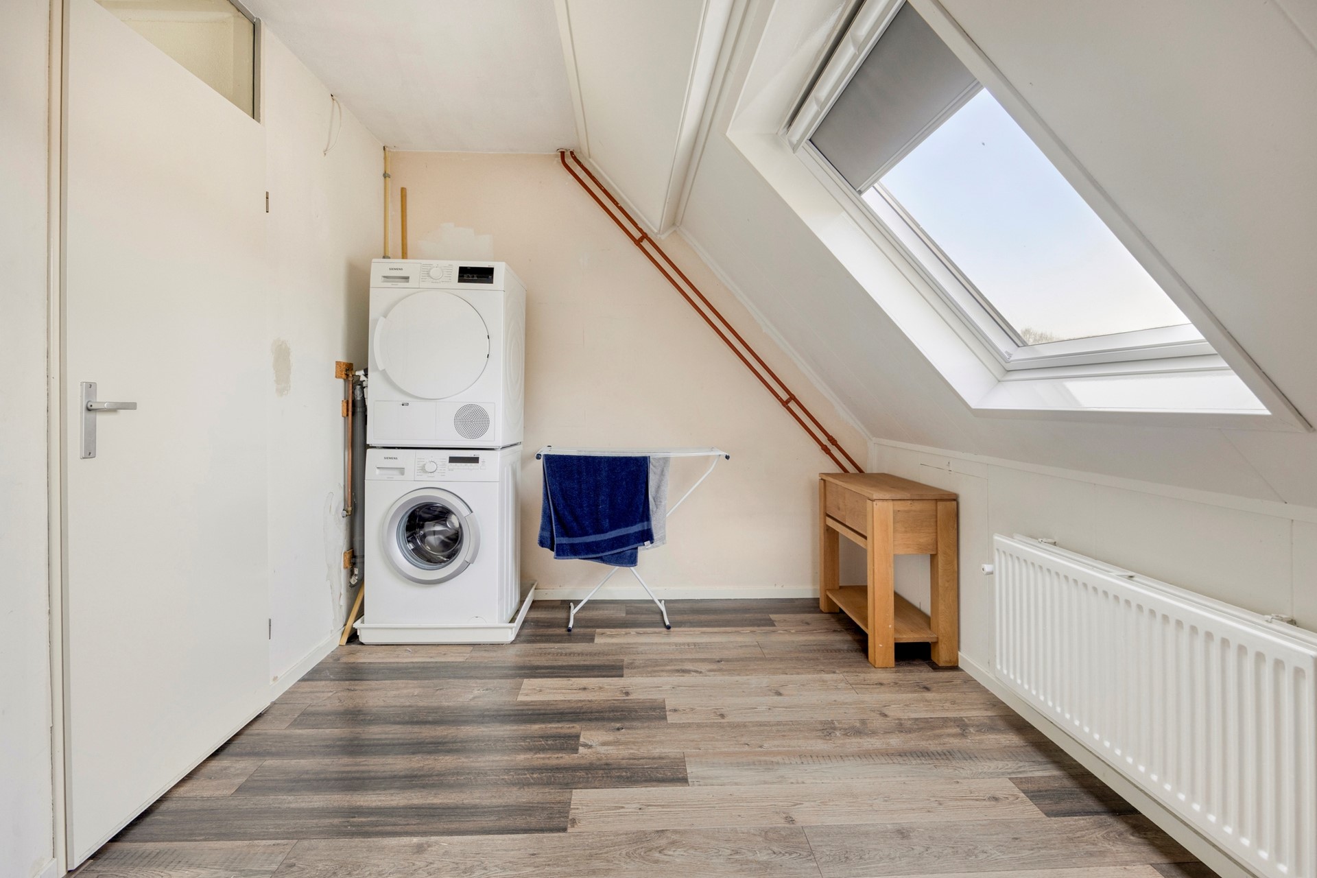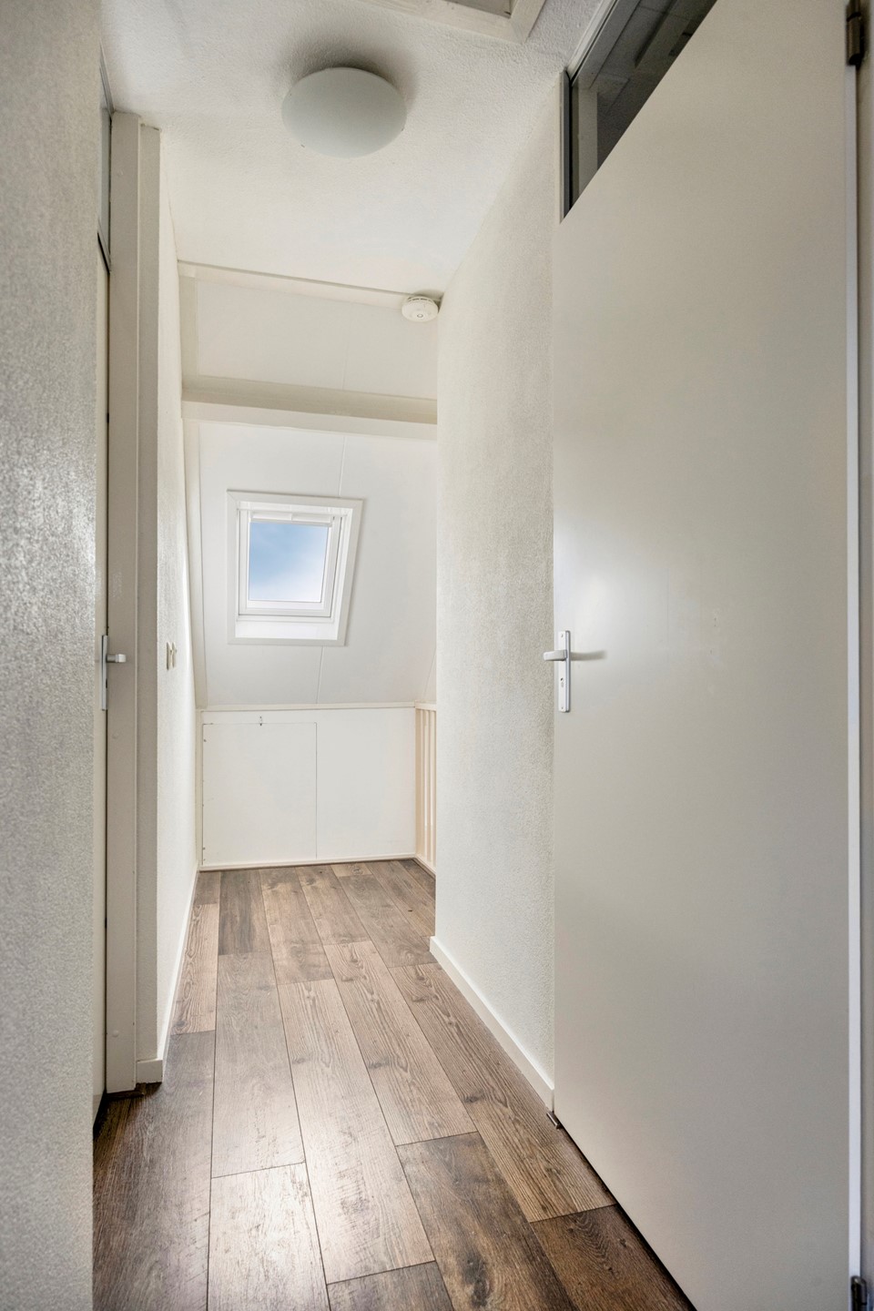 Op deze verdieping bevindt zich tevens een separate toiletruimte en de overloop met trapopgang naar de slaapverdieping.