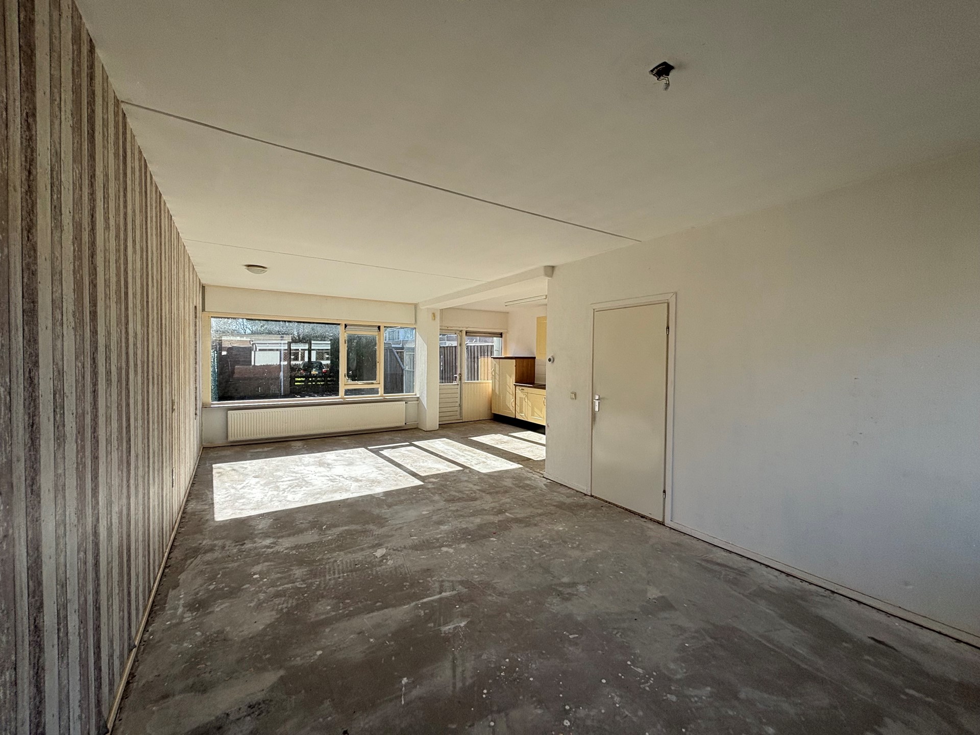 Via de entree komt u in de hal met meterkast, toilet en trapopgang naar de eerste verdieping. Vanuit de hal is tevens de woonkamer bereikbaar. De ruime woonkamer bevindt zich aan de voorzijde van de woning en biedt voldoende ruimte voor een comfortabele zithoek. Dankzij de grote raampartijen komt er veel natuurlijk licht binnen. Aan de achterzijde van de woning bevindt zich de eethoek, die in open verbinding staat met de keuken. De keuken is praktisch ingericht en voorzien van diverse inbouwapparatuur. Vanuit de keuken is er directe toegang tot de achtertuin.