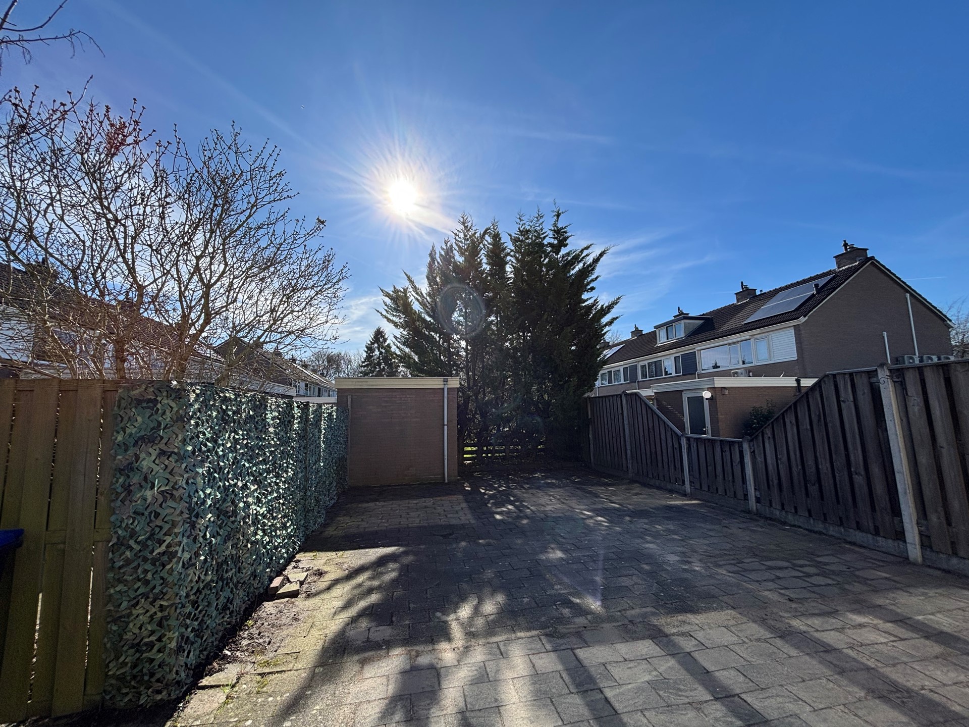 De woning beschikt over een voor-, zij- en achtertuin, waardoor er altijd een fijne plek in de zon of schaduw te vinden is. De achtertuin is ruim en biedt voldoende ruimte voor een terras en groenvoorziening. Achter in de tuin staat een vrijstaande berging, ideaal voor het stallen van fietsen en het opbergen van tuingereedschap.
