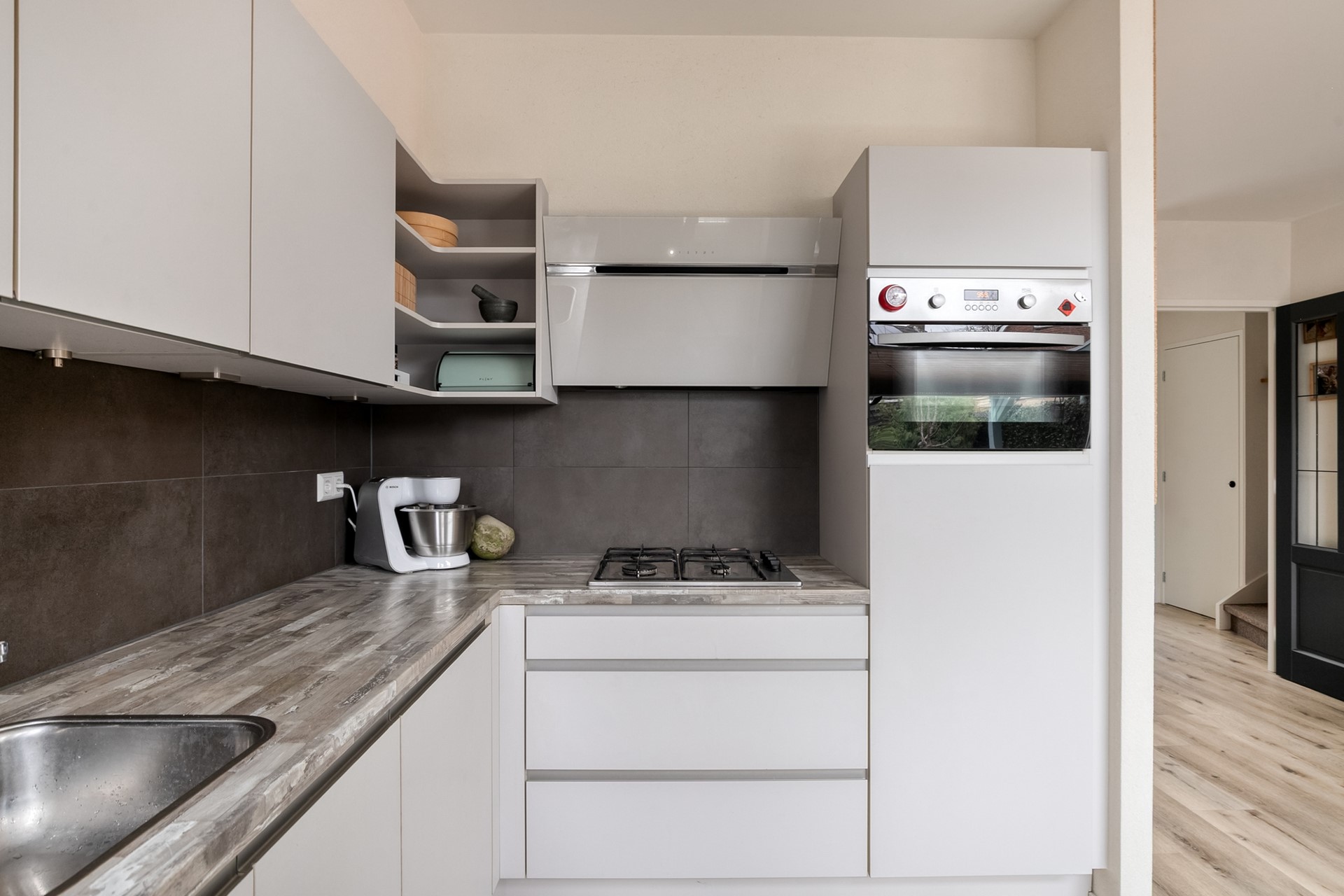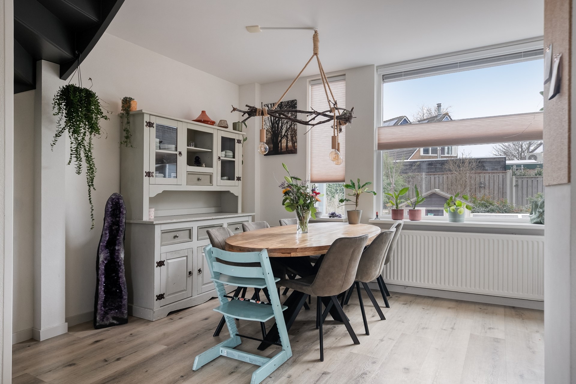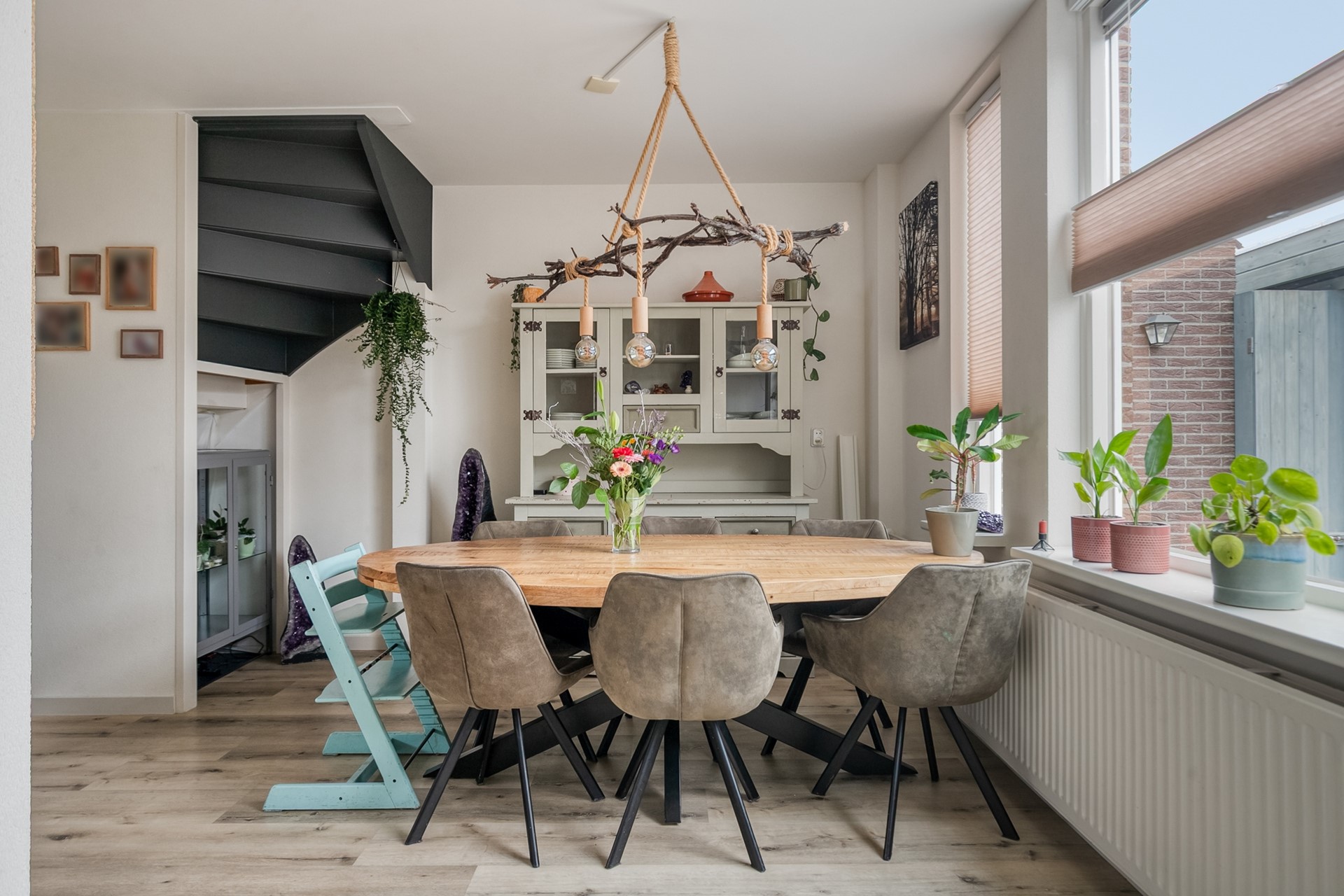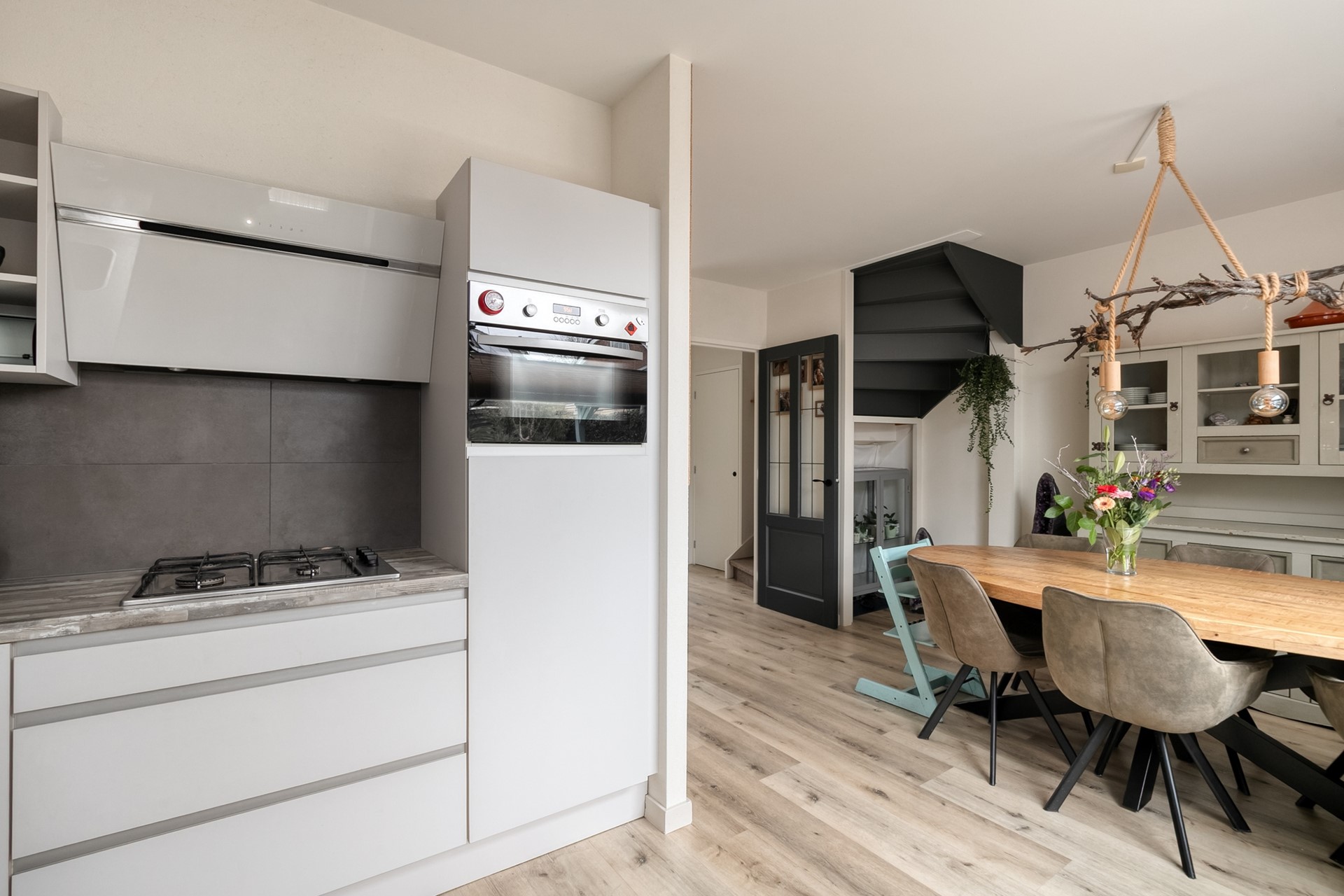 Via de entree komt u in de hal met trapopgang en toegang tot de woonkamer. De woonkamer is ruim en licht dankzij de brede raampartijen aan de voorzijde. De moderne vloer en neutrale afwerking zorgen voor een eigentijdse uitstraling. Aan de achterzijde bevindt zich de eetkamer, welke in open verbinding staat met de woonkamer en een prettig uitzicht biedt op de tuin. De open keuken heeft een moderne uitstraling en een praktische indeling met diverse inbouwapparatuur.