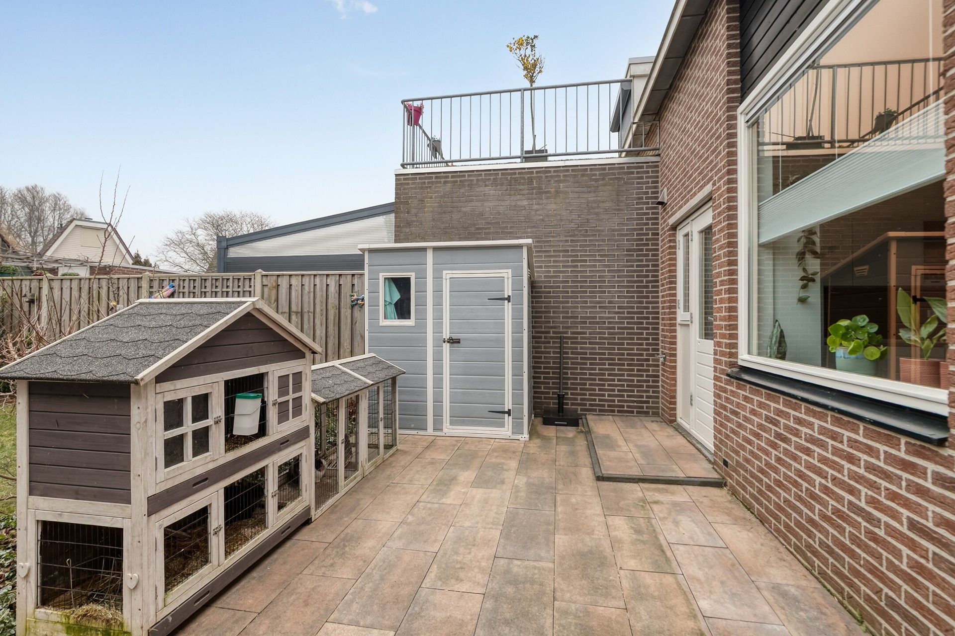 De achtertuin is verzorgd aangelegd en biedt voldoende privacy. Dankzij de aanwezige overkapping kan er ook bij minder gunstige weersomstandigheden comfortabel buiten worden gezeten. Daarnaast is er een garage aanwezig die geschikt is voor opslag, hobbyruimte of het stallen van fietsen.