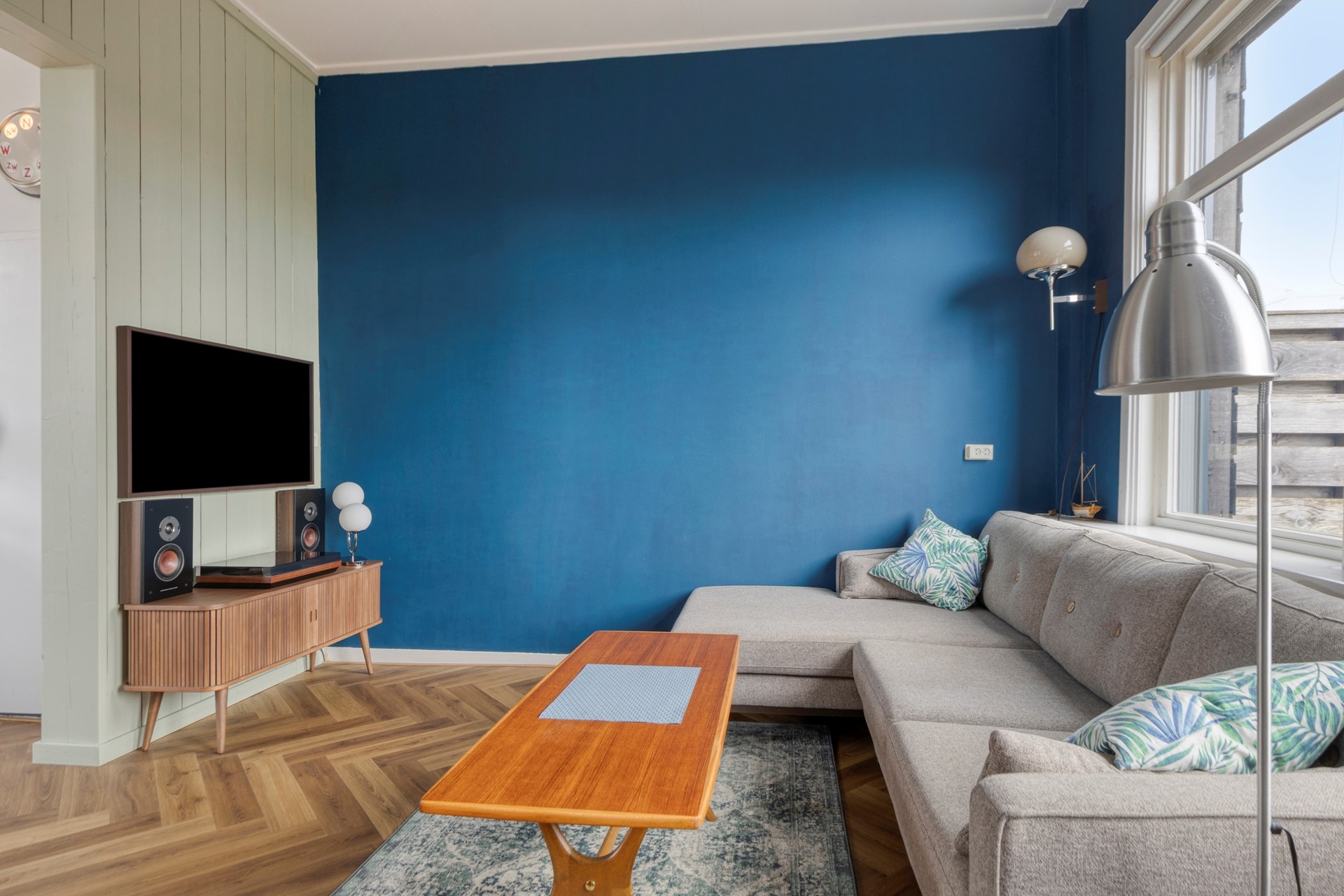-Gezellige woonkamer met prettig lichtinval, voorzien van elektrische zonwering aan de achterzijde.