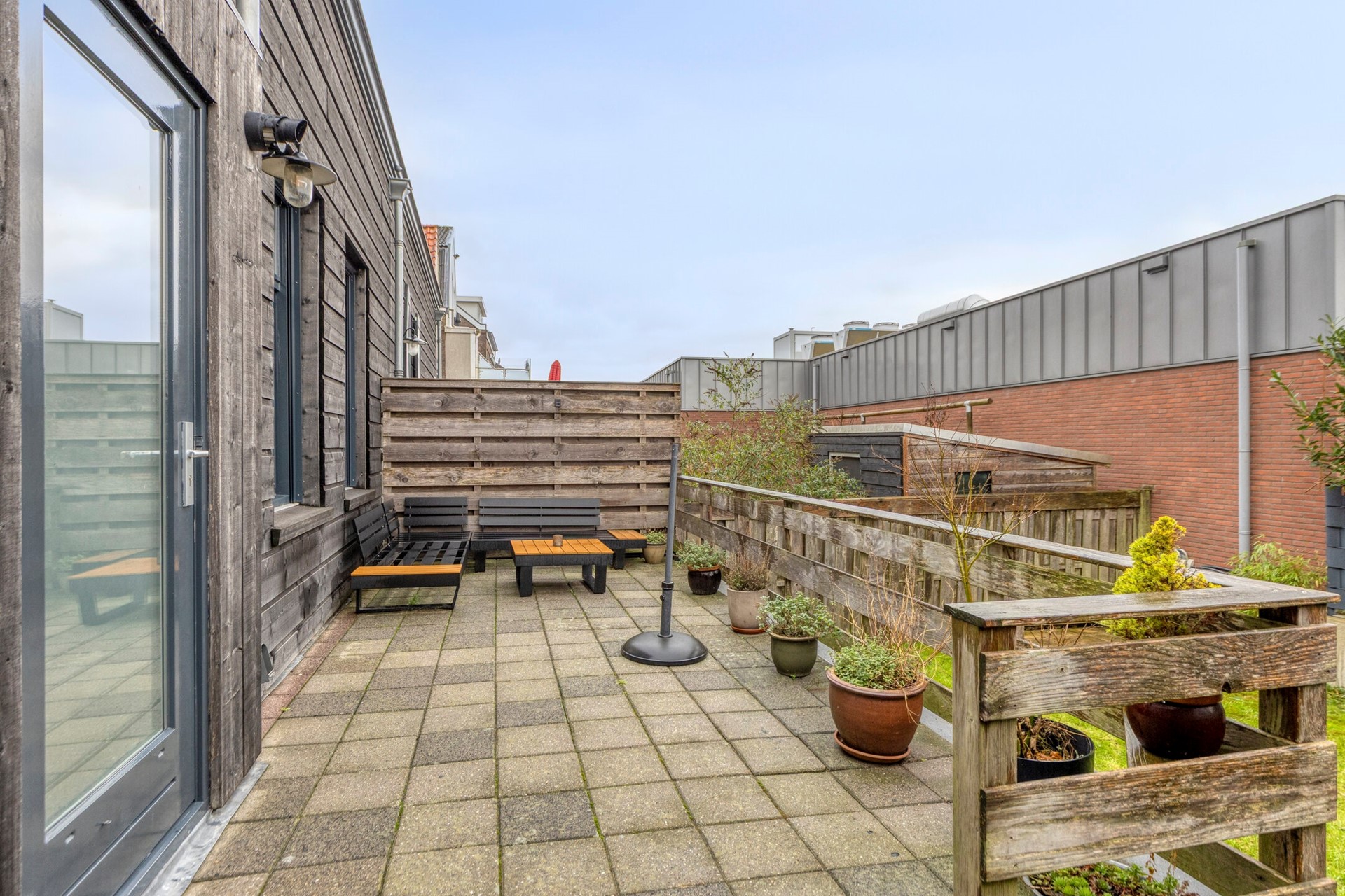De woning beschikt over een eigen oprit, een luxe in dit centrale deel van Lemmer. Achter de woning ligt een verzorgde tuin met privacy en een verhoogd terras dat bereikbaar is vanuit de bijkeuken. Een fijne plek om te ontspannen.